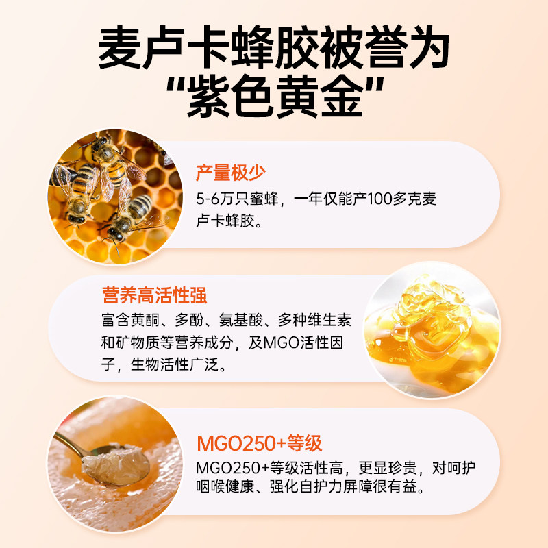 Hoyer麦卢卡蜂胶软糖MGO250+润喉糖柠檬薄荷清凉喉咙痛护咽嗓养肺