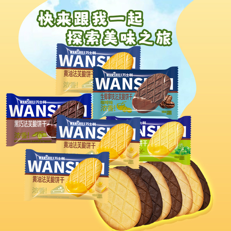 万士利法芙脆黄油巧克力薄脆饼干生椰拿铁曲奇早餐办公室休闲零食