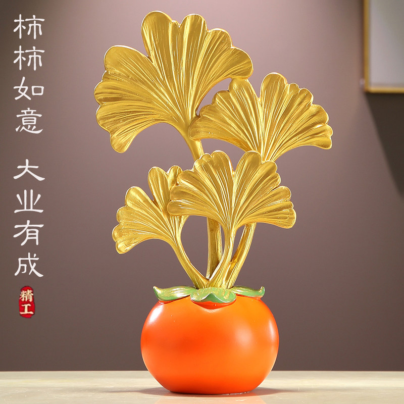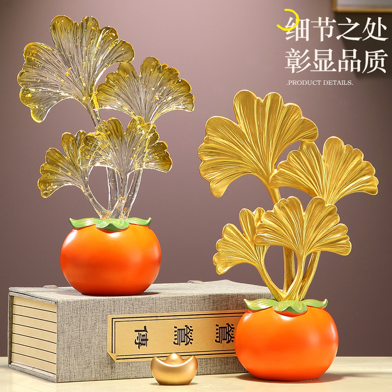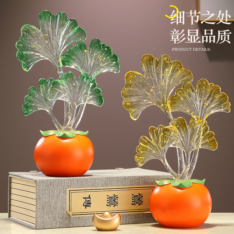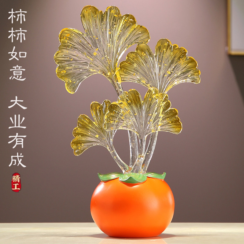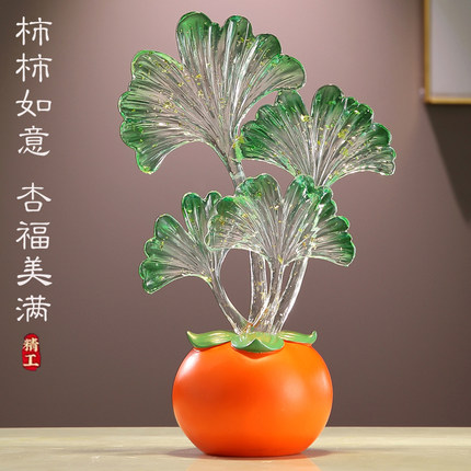 事业有成柿子摆件水晶叶子客厅电视酒柜玄关装饰乔迁新居生日礼物