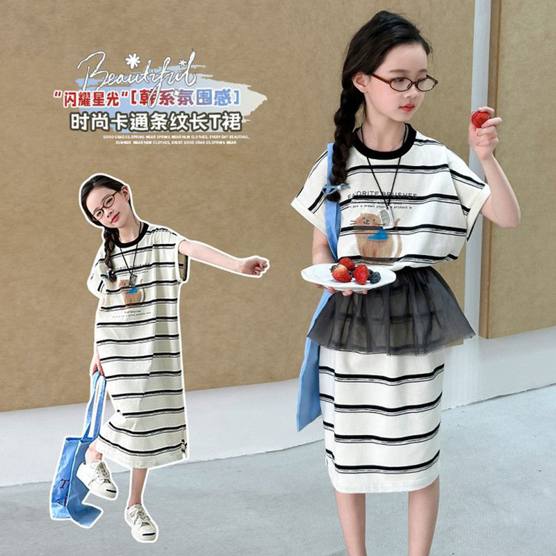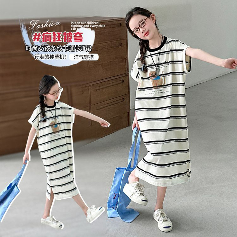 学院风夏季百搭中大童裙子潮韩版儿童连衣裙网红时髦女童洋气夏装