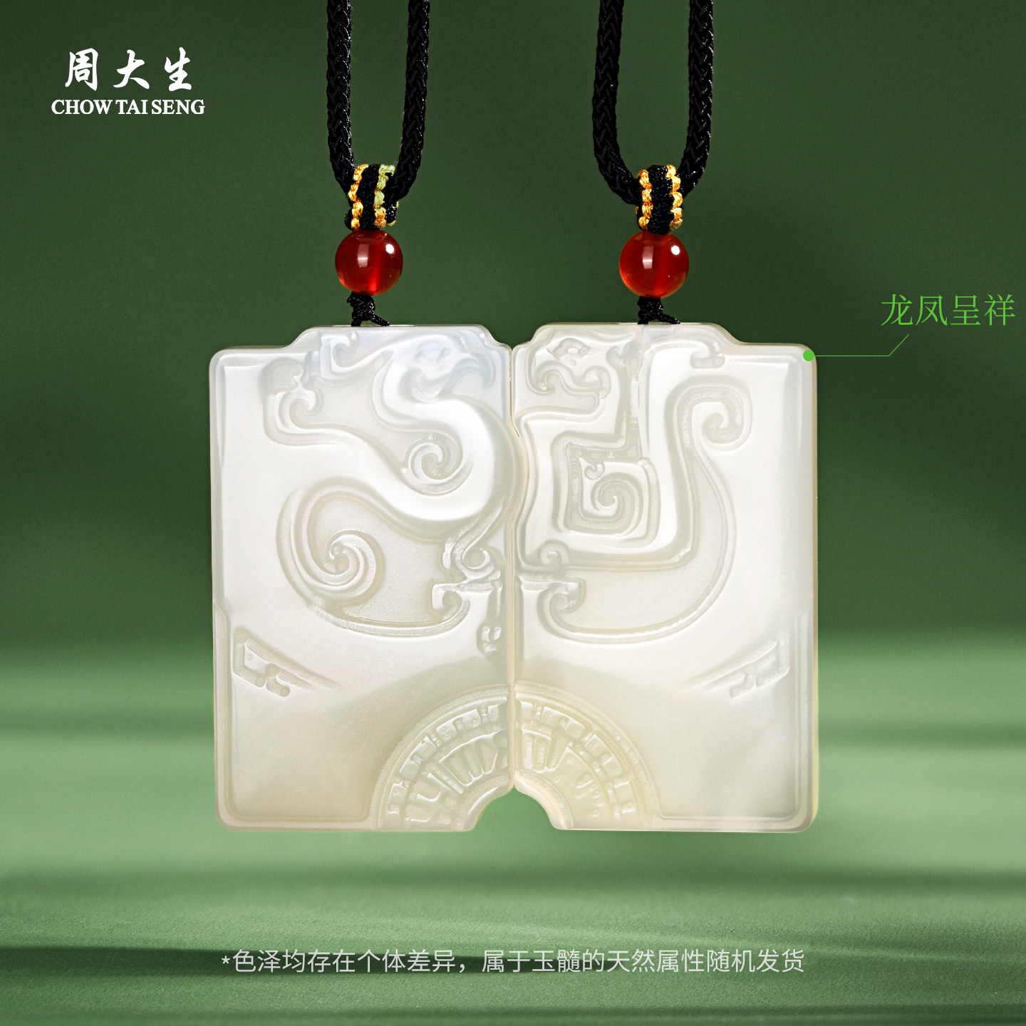 周大生官方龙凤玉髓吊坠情侣对玉相守挂坠本命年生日礼物送女朋友