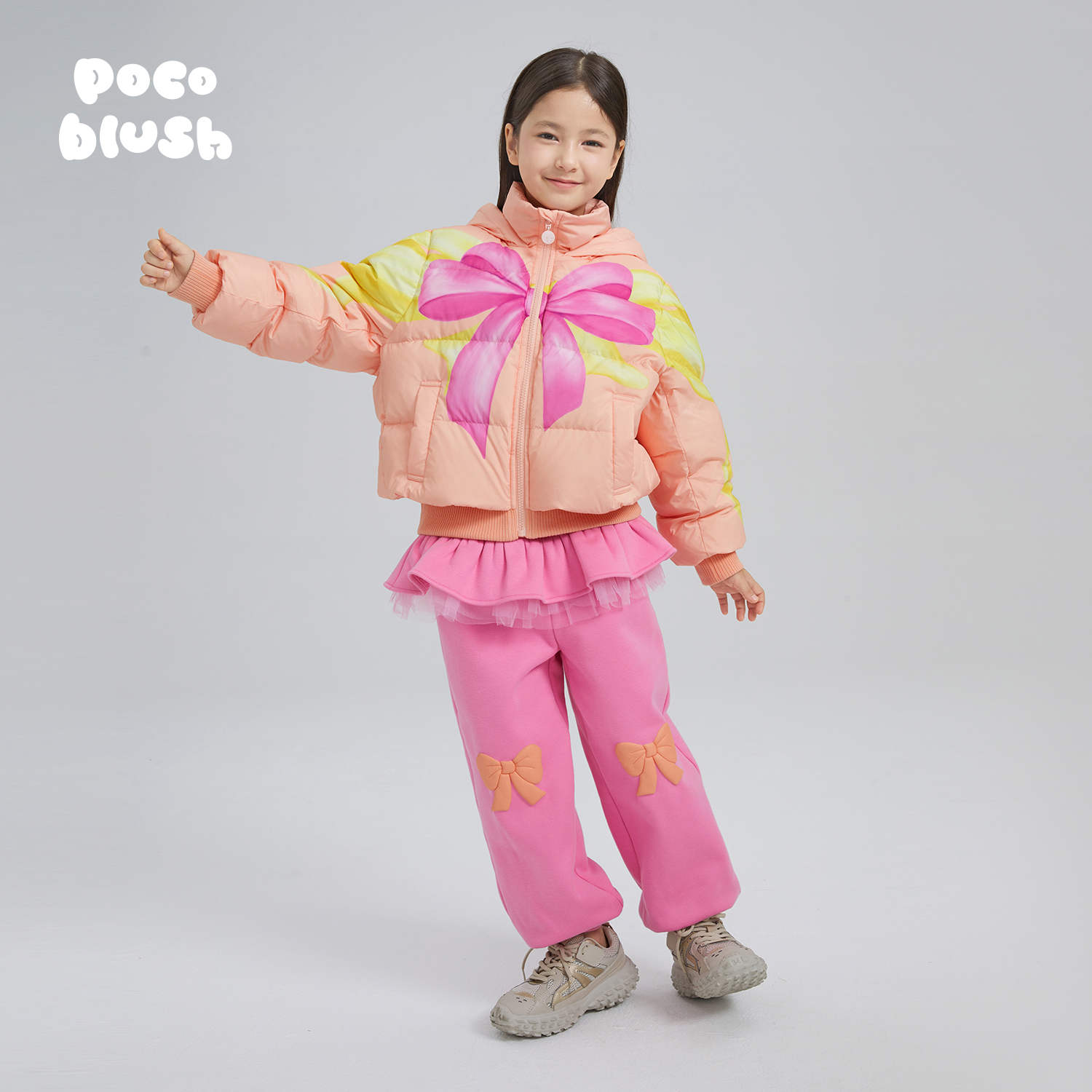 pocoblush原创设计蝴蝶结印花裙裤女童冬季休闲长裤加绒加厚裤子
