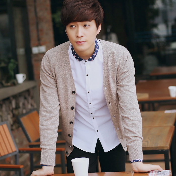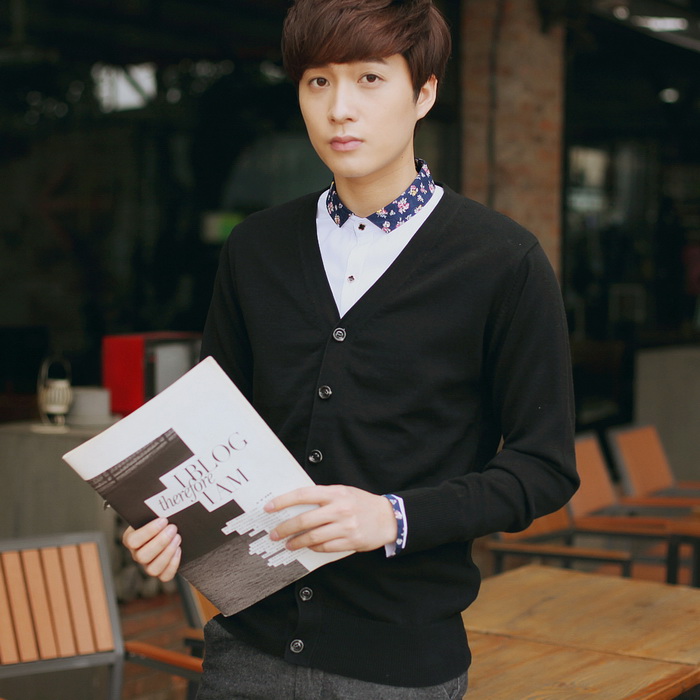 潮流男士纯色V领毛衣开衫外套韩版男装春秋长袖针织衫休闲薄外搭