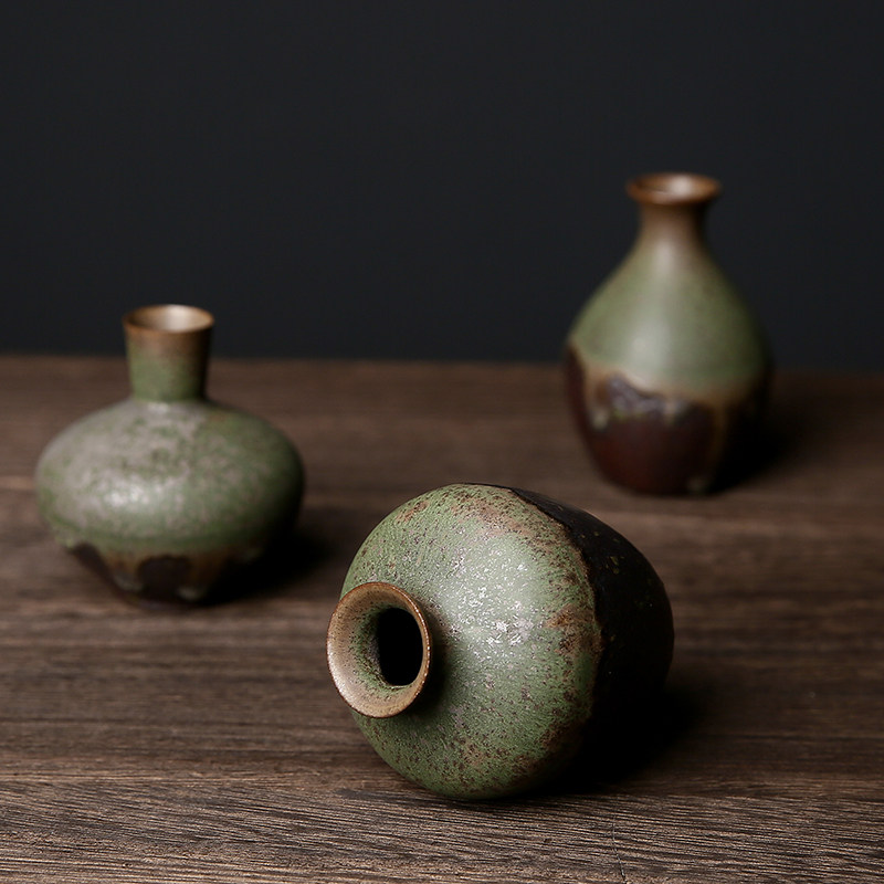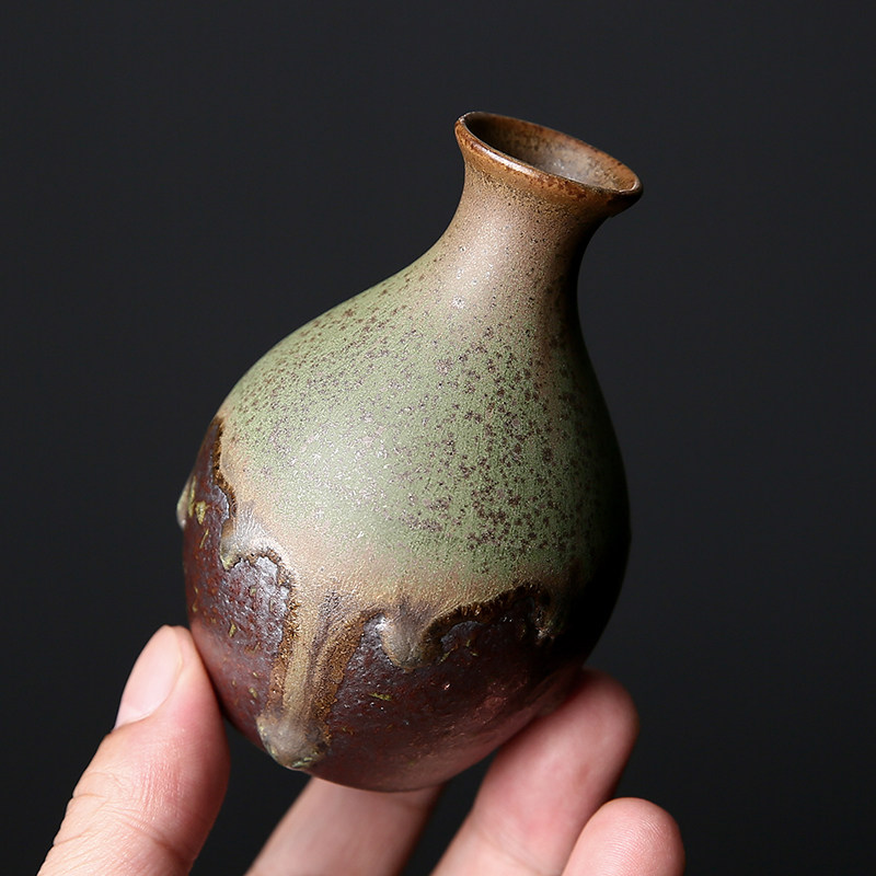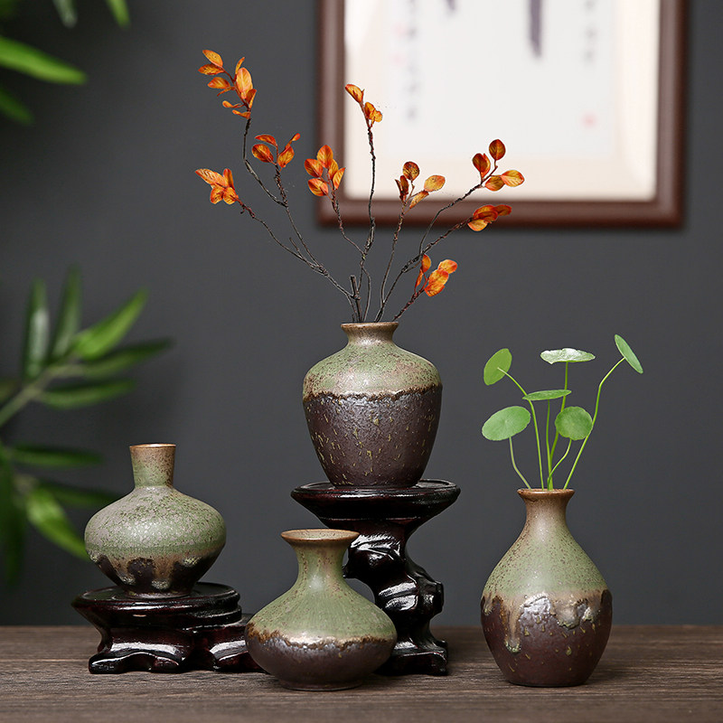 窑变流釉青铜釉陶瓷花瓶新中式客厅茶桌插花小花器茶艺装饰品摆件