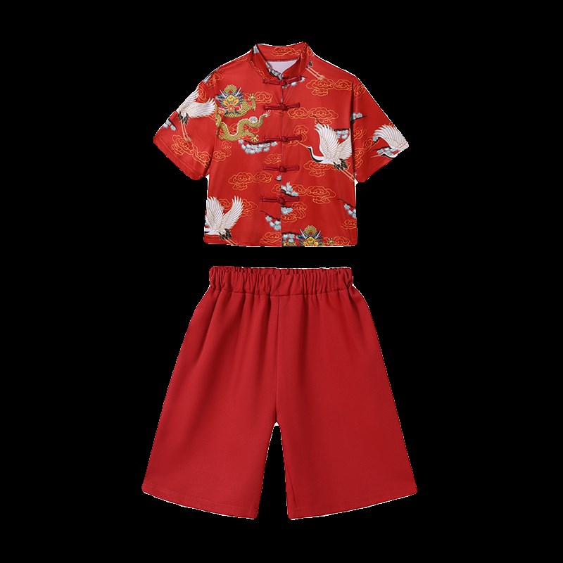 元旦儿童红色啦啦操服装男童唐装女童旗袍少儿中国风团体舞演出服