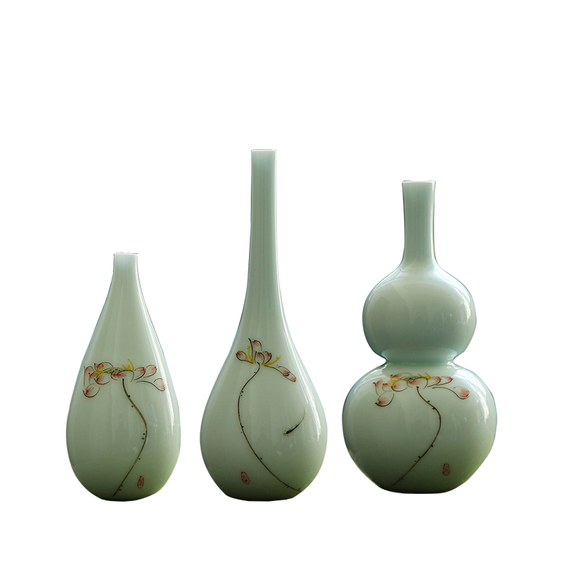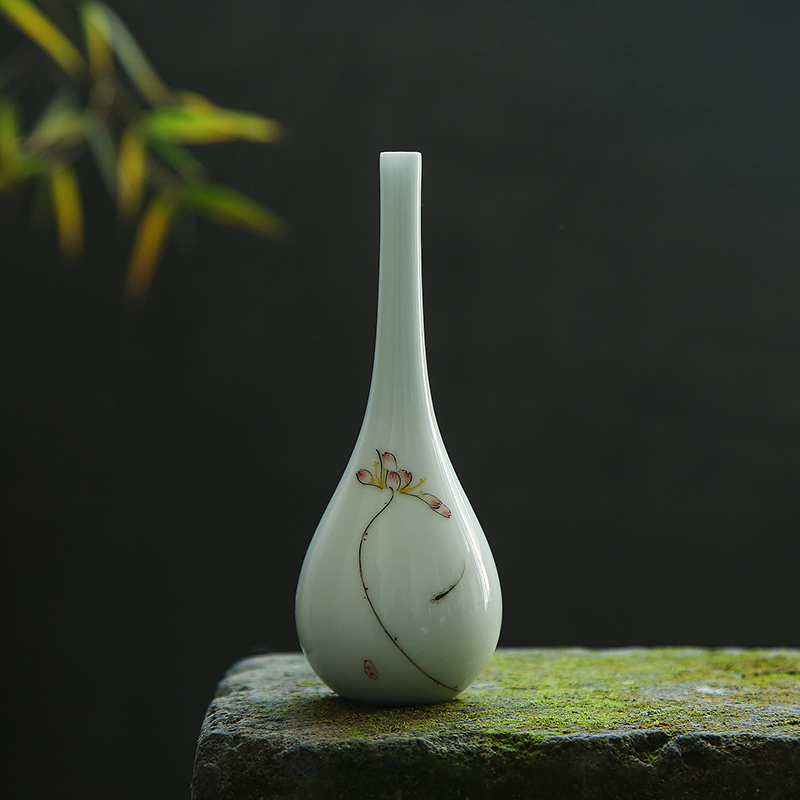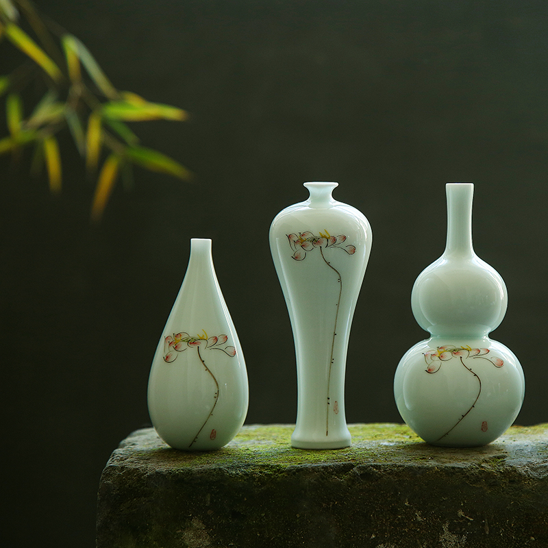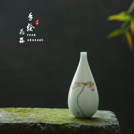 景德镇陶瓷小花瓶迷你瓷器禅意桌面装饰创意客厅摆件手绘莲花花插