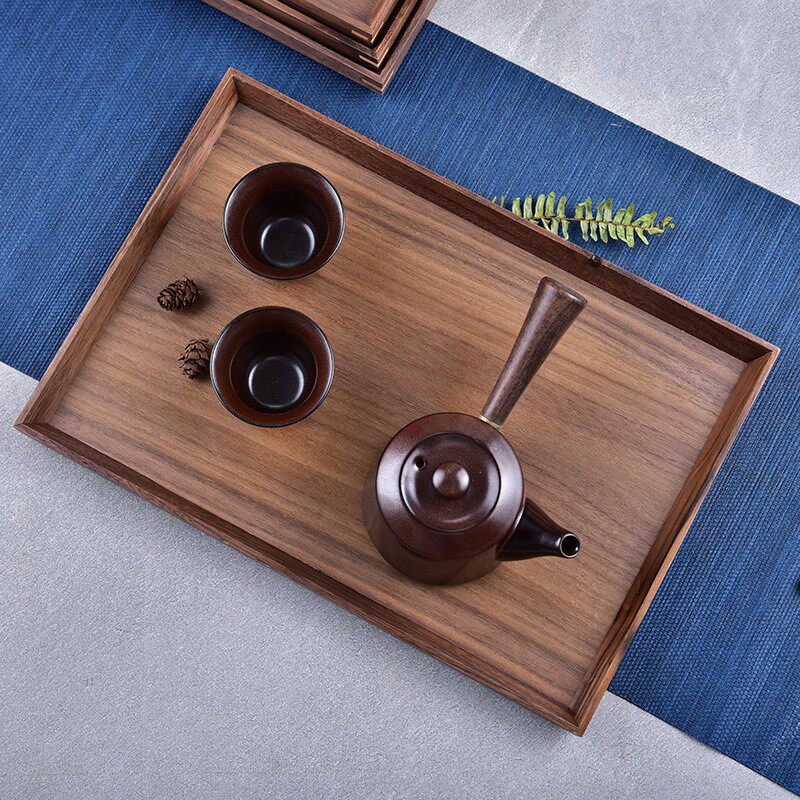 黑胡桃木托盘方形果盘中式木质餐点盘食物盘一盘多用茶具托盘家用