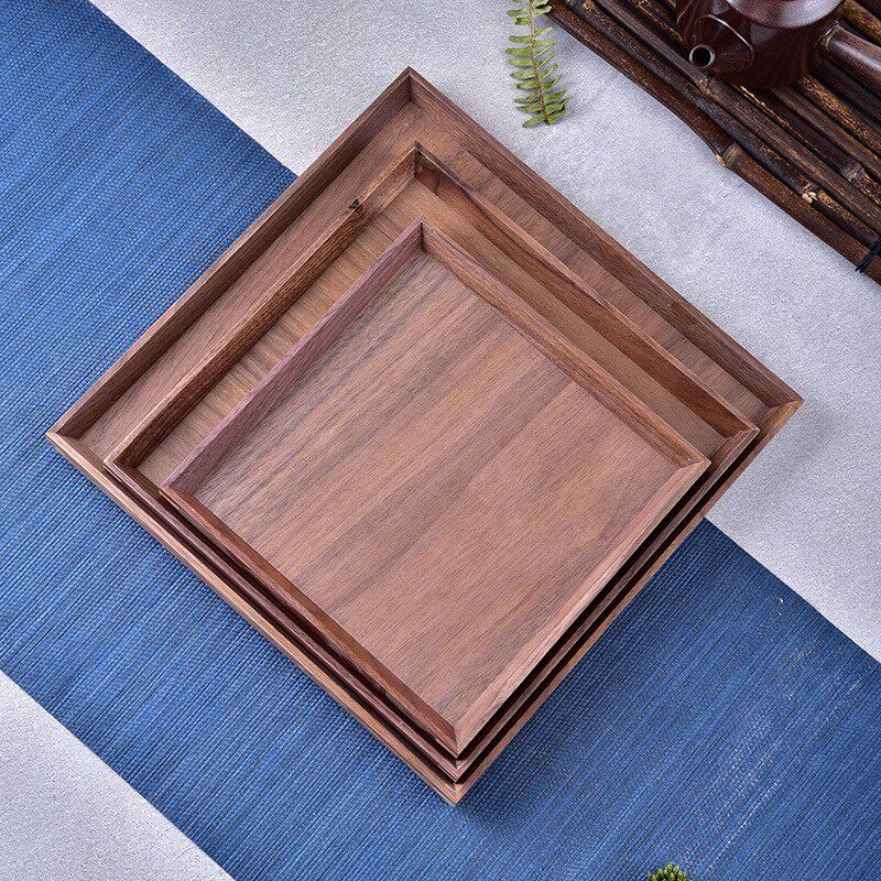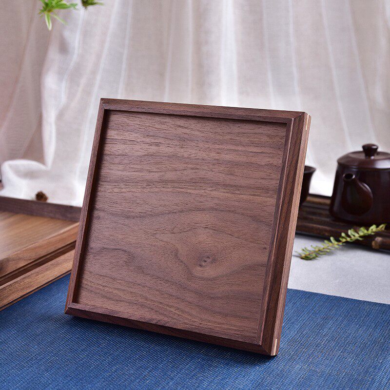 黑胡桃木托盘方形果盘中式餐点盘
