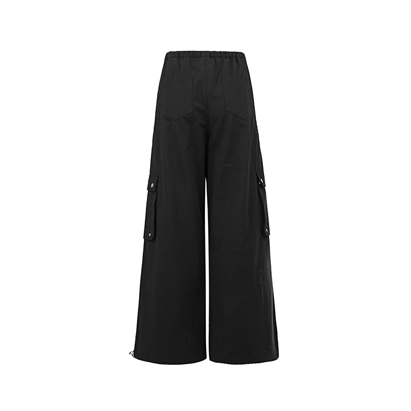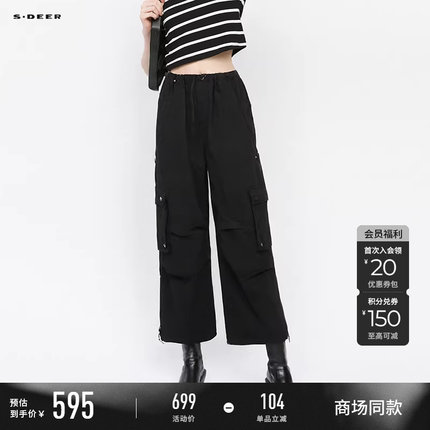 【商场同款】sdeer圣迪奥女高腰松紧户外降落伞工装长裤S25380805