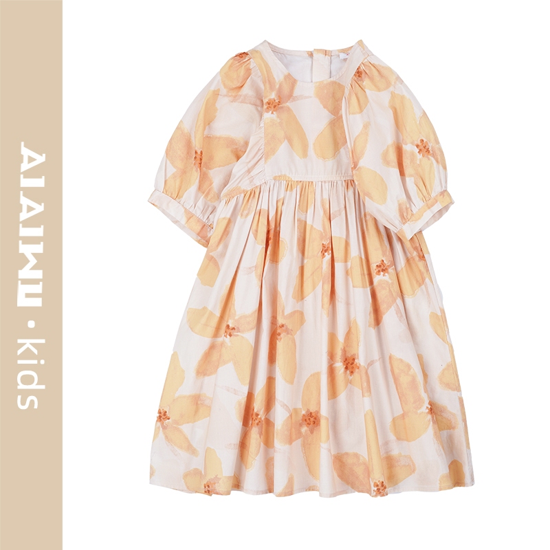 艾艾屋女童裙子夏季童装新品大童田园淑女风短袖有袖连衣裙KNSS10