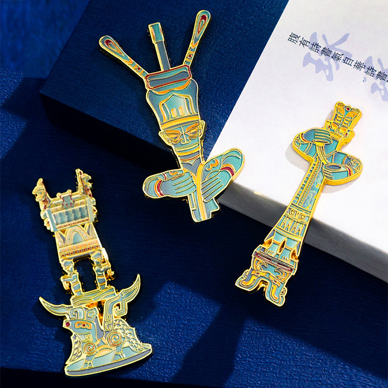 三星堆博物馆文创纪念品青铜大立人面具金属冰箱贴磁吸创意小礼品