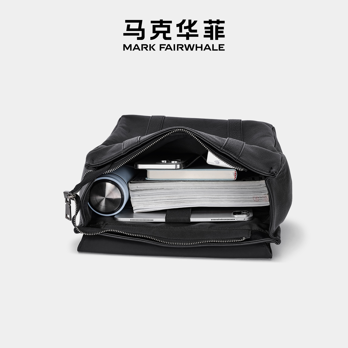 Mark Fairwhale/马克华菲男士牛皮简约双肩包休闲通勤电脑旅行包