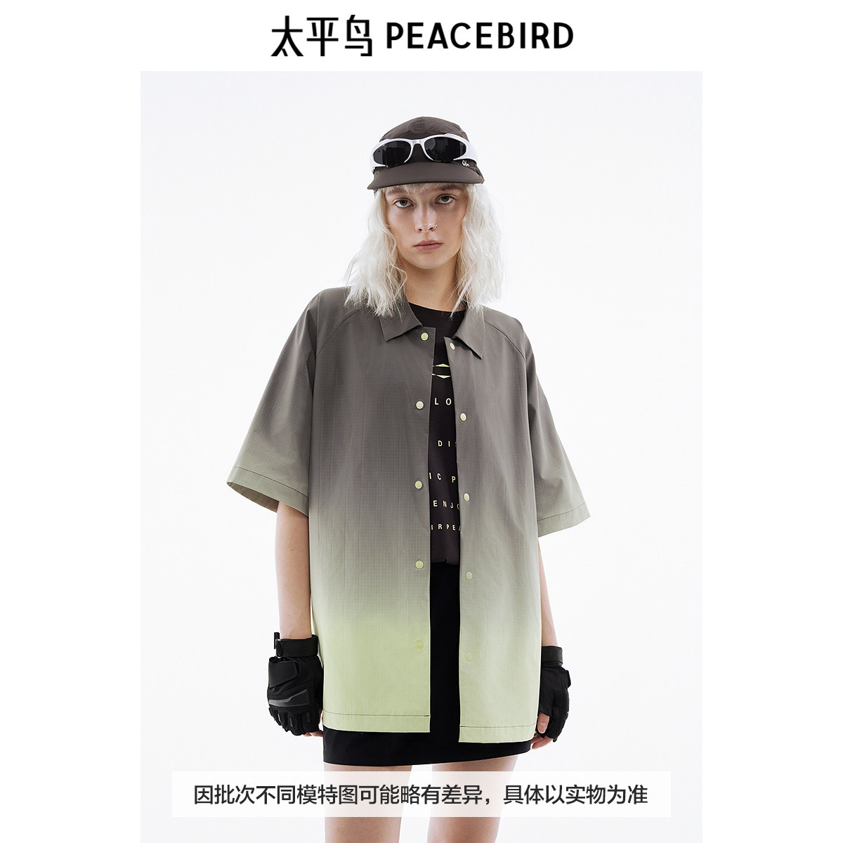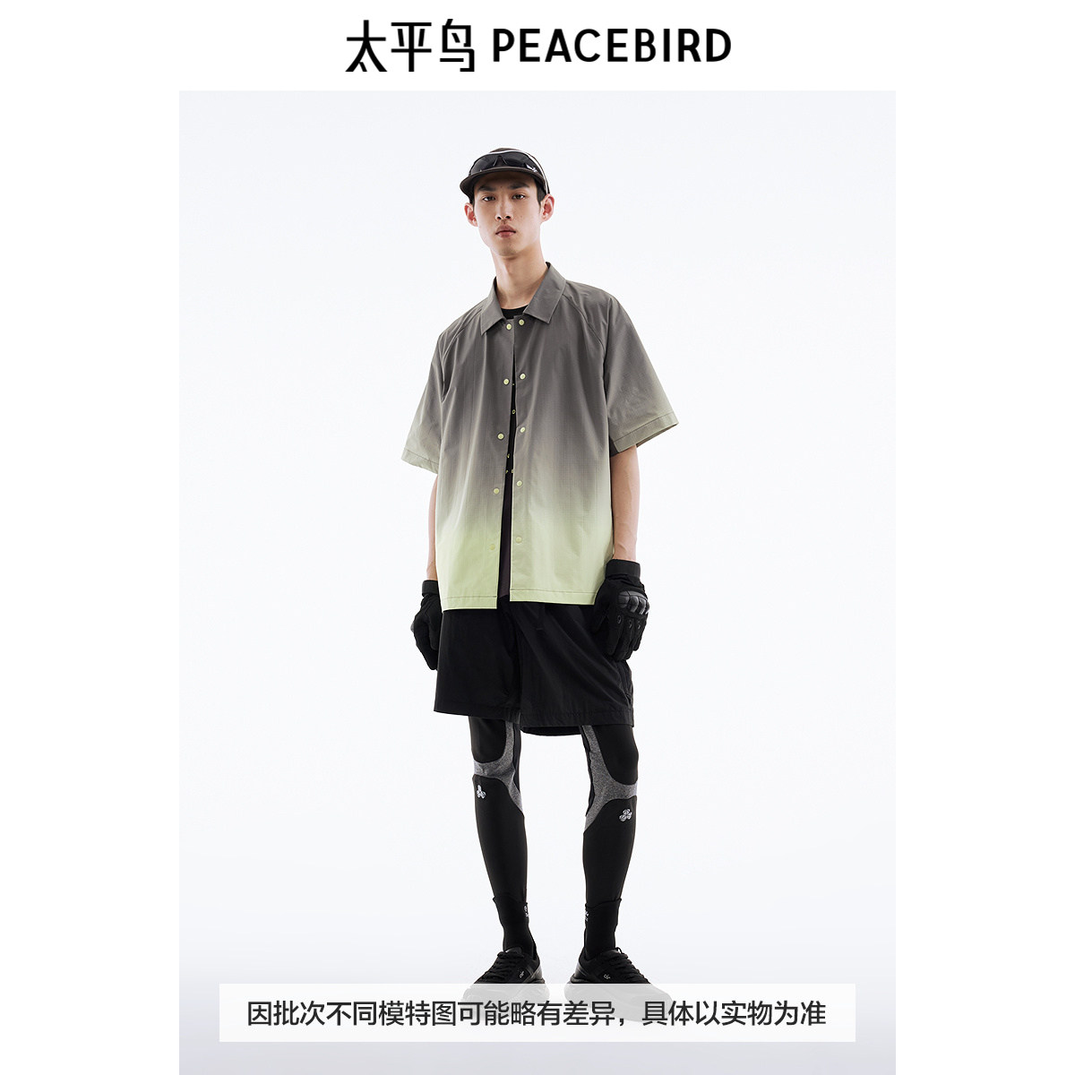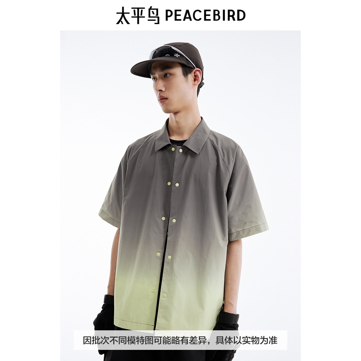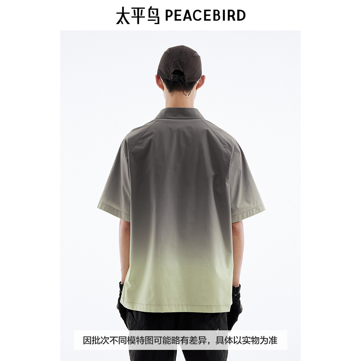 太平鸟男装渐变扎染衬衫新款宽松翻领衬衣B2CJE2B10