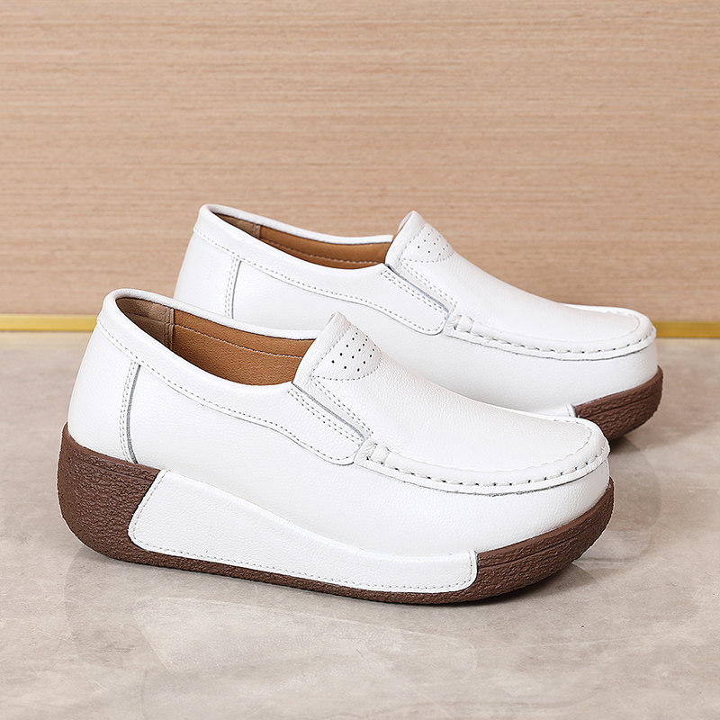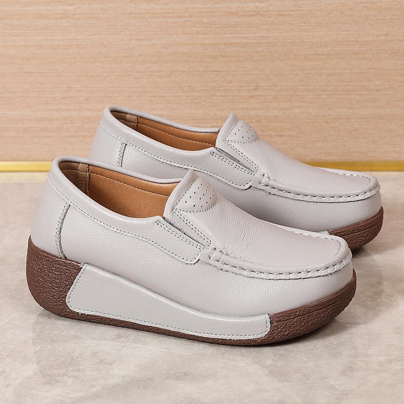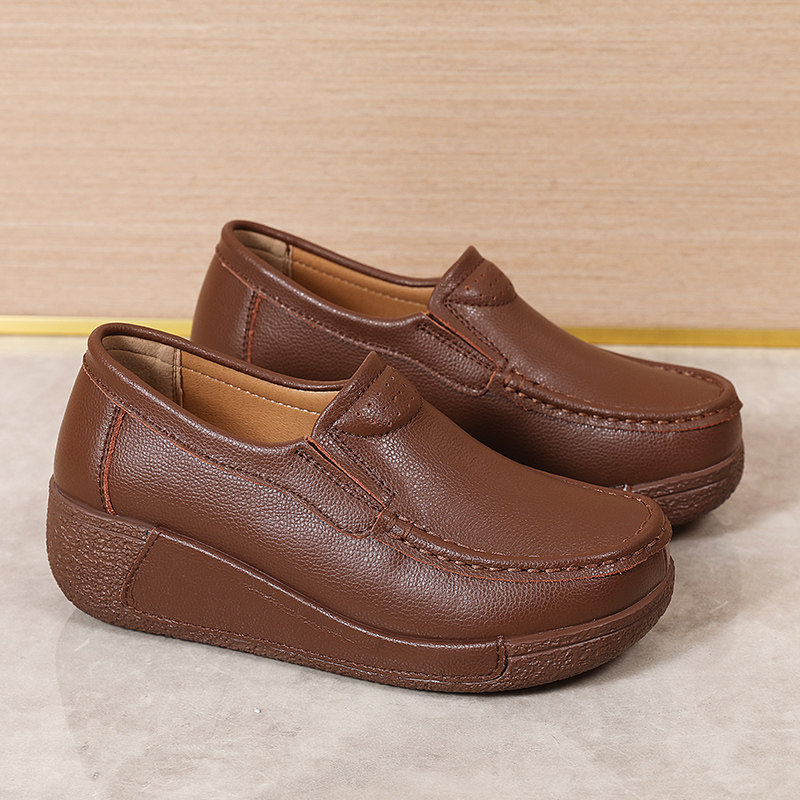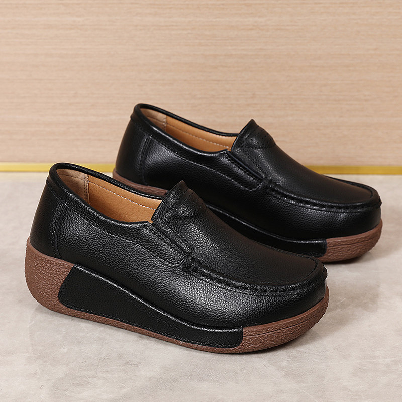 春秋款牛皮真皮舒适一脚蹬休闲女复古简约百搭松糕摇摇防滑妈妈鞋