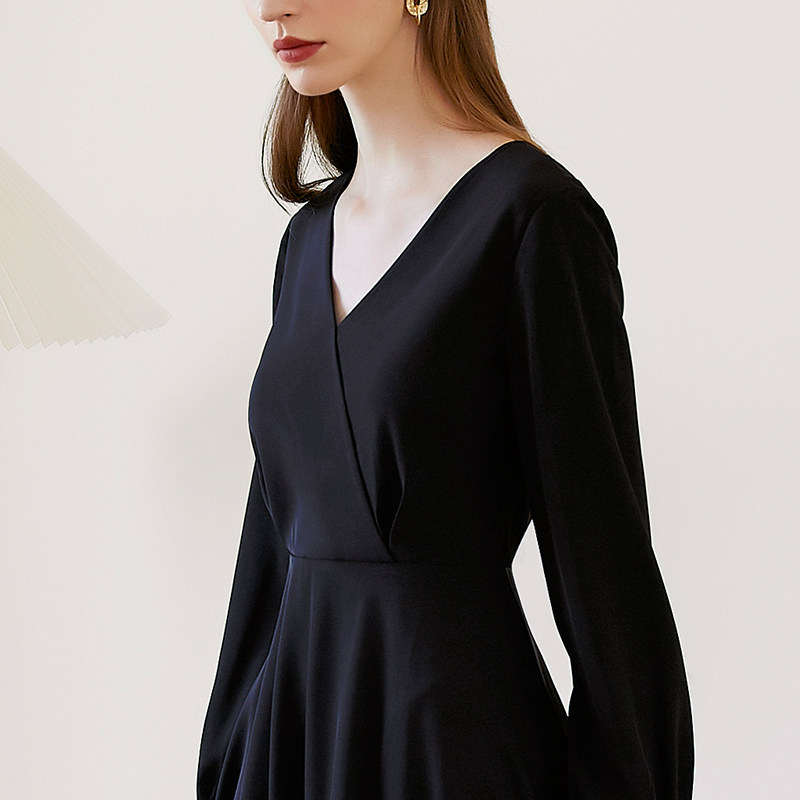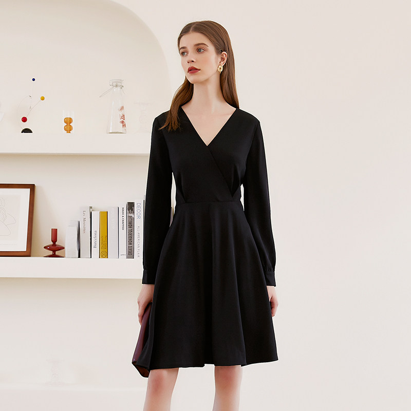 映想V领长袖气质小黑裙