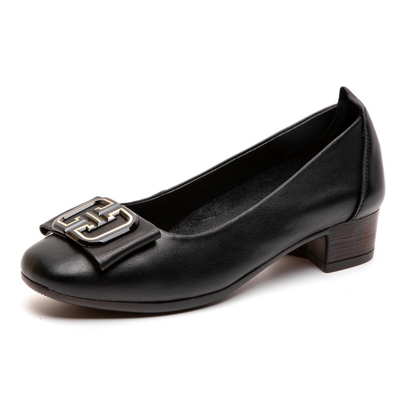 粗跟妈妈鞋真皮软底2025秋季款单鞋舒适中年女鞋中跟中老年软皮鞋