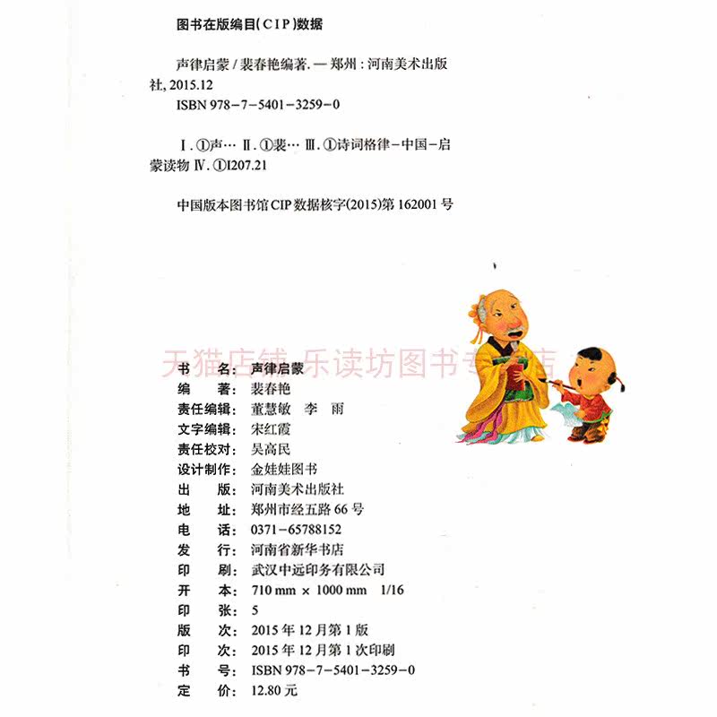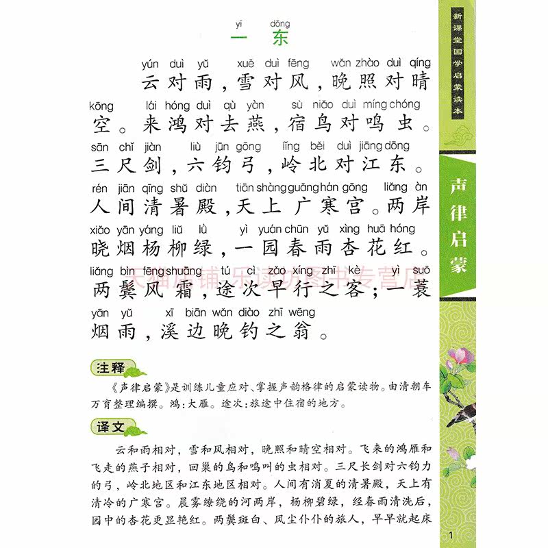 新课堂国学启蒙读本:声律启蒙(注音彩图) 裴春艳 河南美术出版社 全新课本