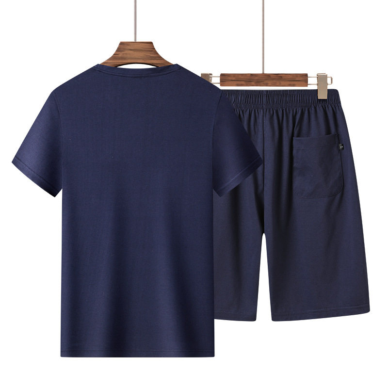爸爸短袖短裤夏装纯棉运动服中老年人休闲运动套装中年男士两件套