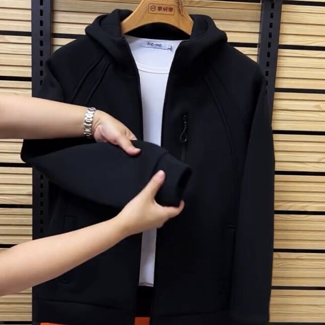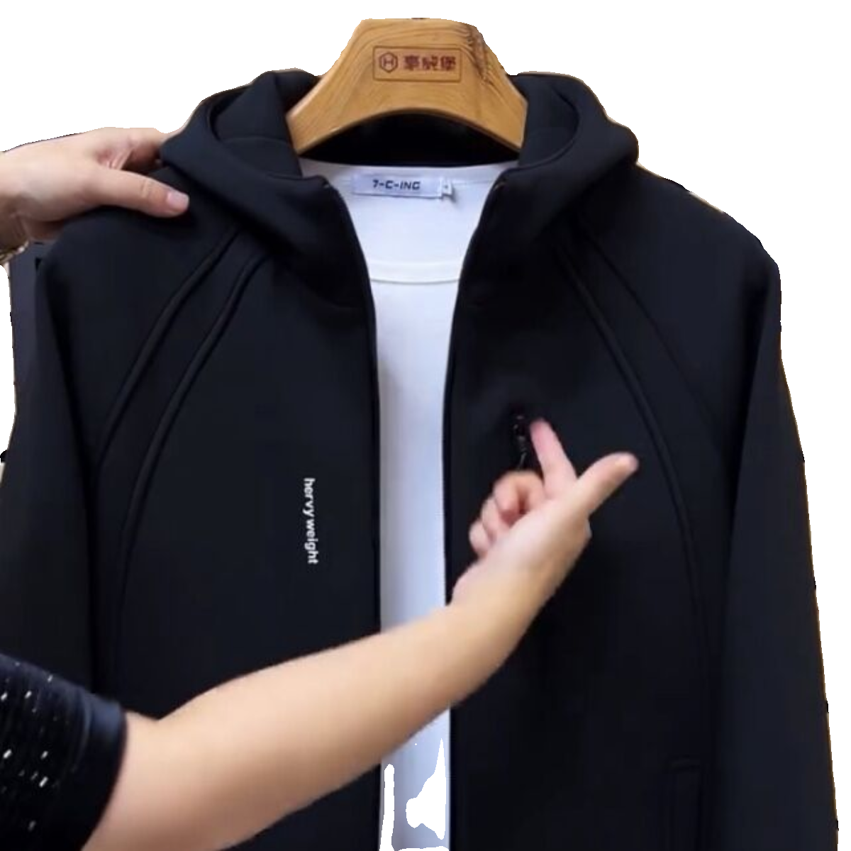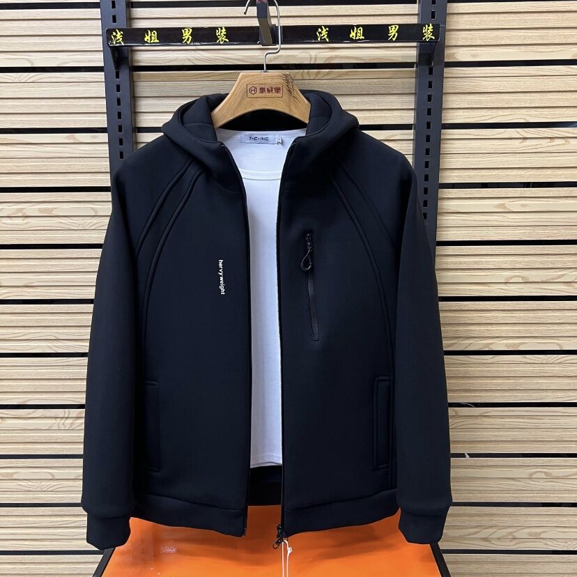 秋冬男士新款加绒加厚连帽夹克简约百搭宽松休闲纯色保暖外套卫衣