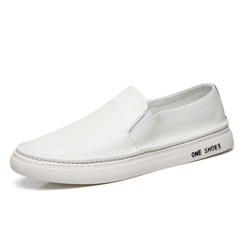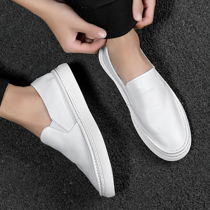 夏季透气头层牛皮一脚蹬乐福鞋男懒人休闲潮流板鞋男款真皮小白鞋