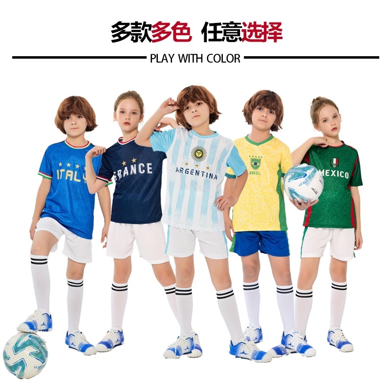 儿童足球服定制套装男幼儿园中小学生巴西阿根廷德国足球衣女印字