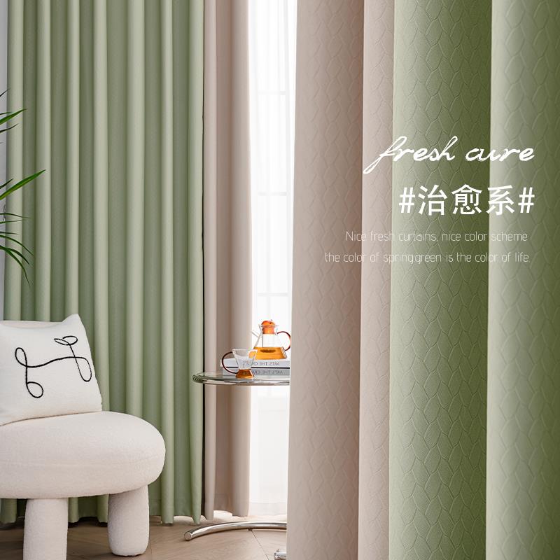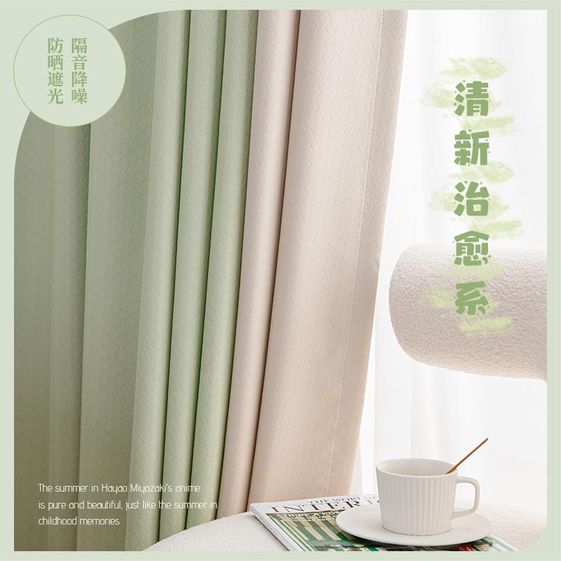 新款北欧清新拼色遮光卧室窗帘客厅现代简约成品飘窗隔热防晒布帘