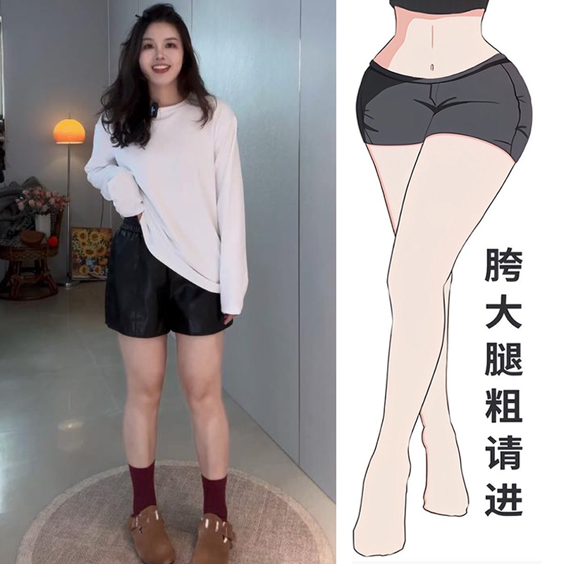 黑色高腰PU皮裤休闲短裤女秋冬大码宽松外穿a字阔腿显瘦打底靴裤