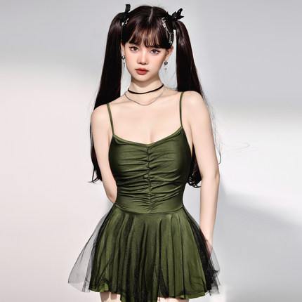 少年齐原创 新款辣妹高颜值显瘦遮肚保守连体裙女孩温泉游泳衣