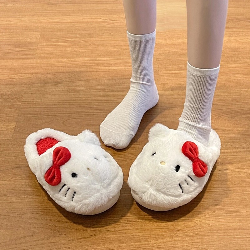 hellokitty毛毛棉拖鞋防滑家居室内女士宿舍可爱拖秋冬季2024新款