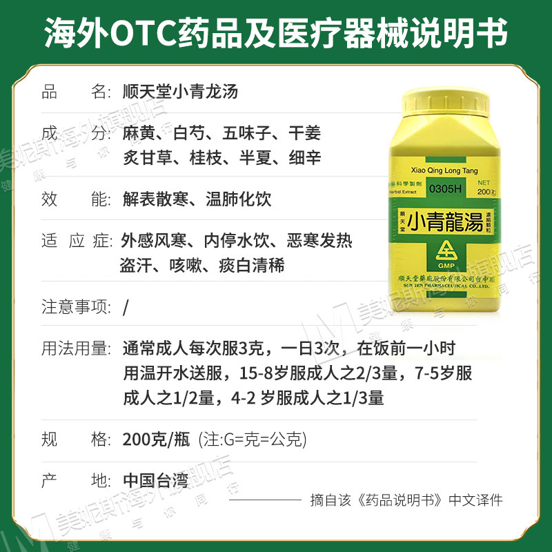 台湾顺天堂小青龙汤解表散寒温肺化饮外感风寒咳嗽盗汗恶寒发热