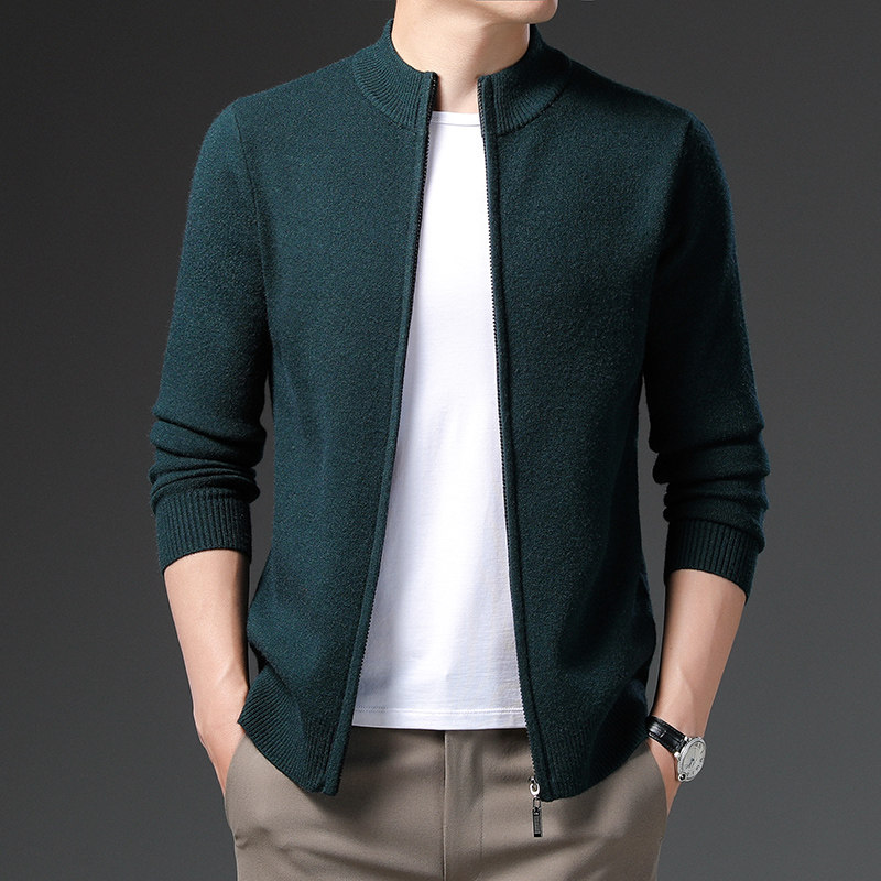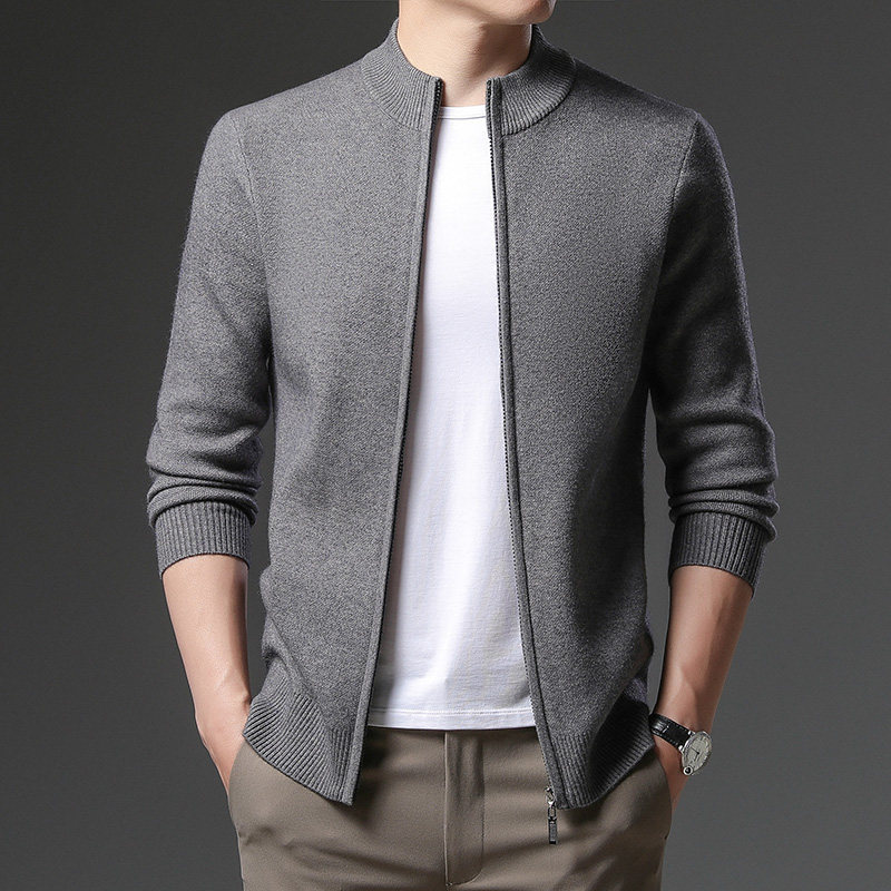 鄂尔多斯市针织开衫男2024秋冬新款男士商务纯羊毛外套男款毛衣潮
