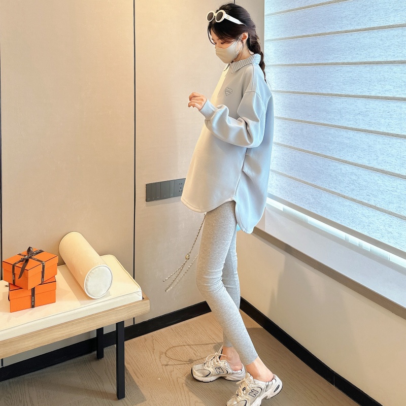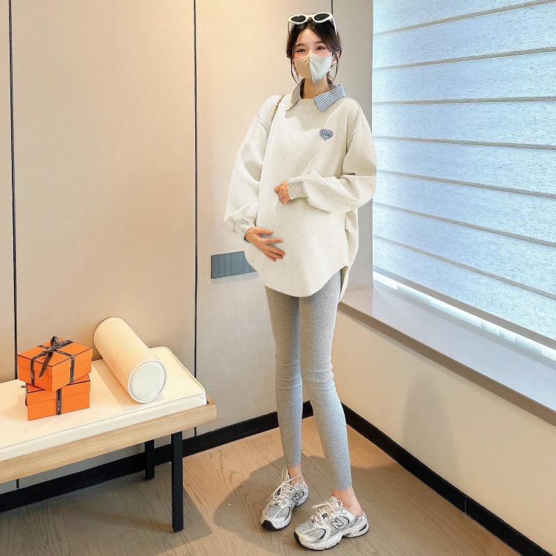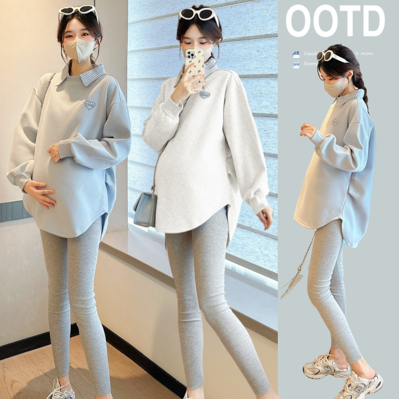 大码孕妇卫衣春秋季新款2025中长款时尚假两件衬衫领上衣女遮屁股