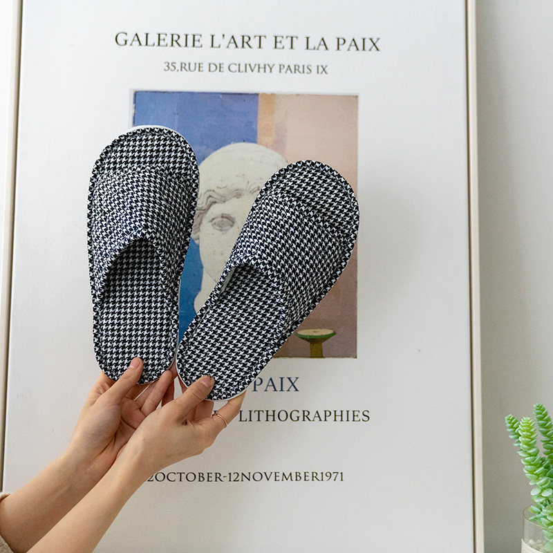北欧绗缝居家布艺拖鞋加厚静音地板防滑家用室内秋冬缝缀一字拖鞋