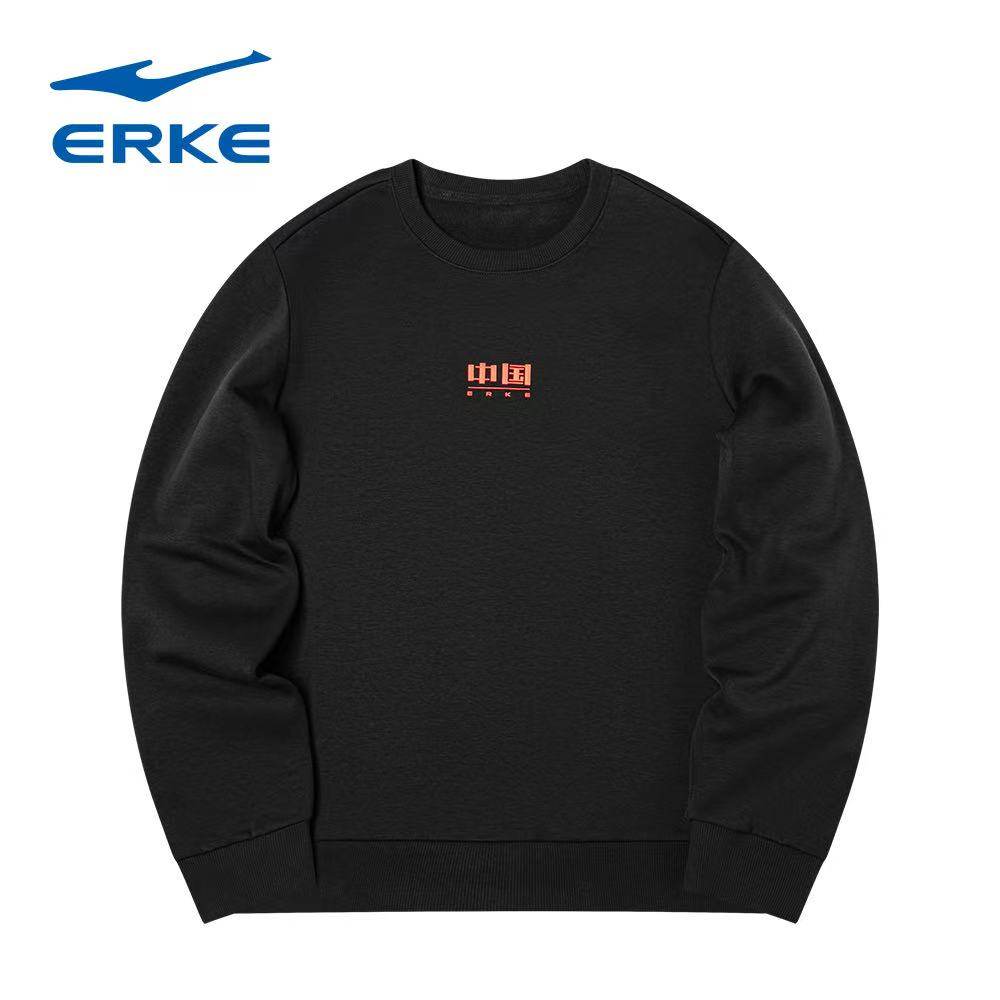 鸿星尔克2025冬季新款男子加绒加厚圆领套头中国卫衣11225401193