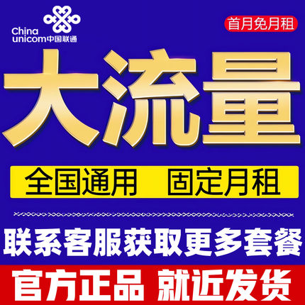 中国联通流量卡纯上网无线限全国通用5G大流量卡手机电话卡不限速