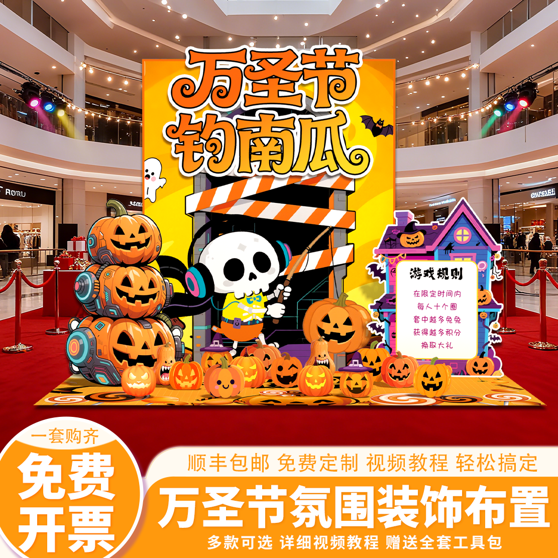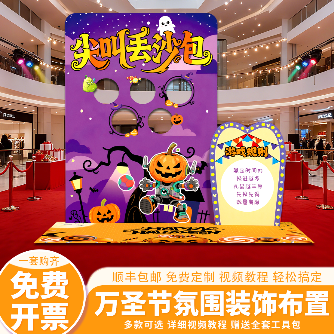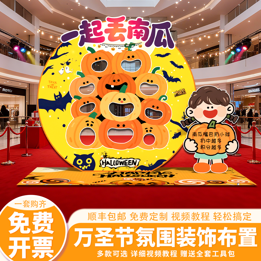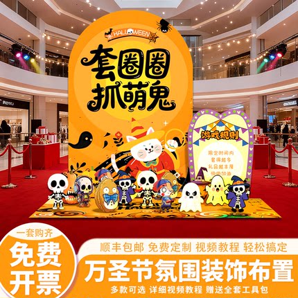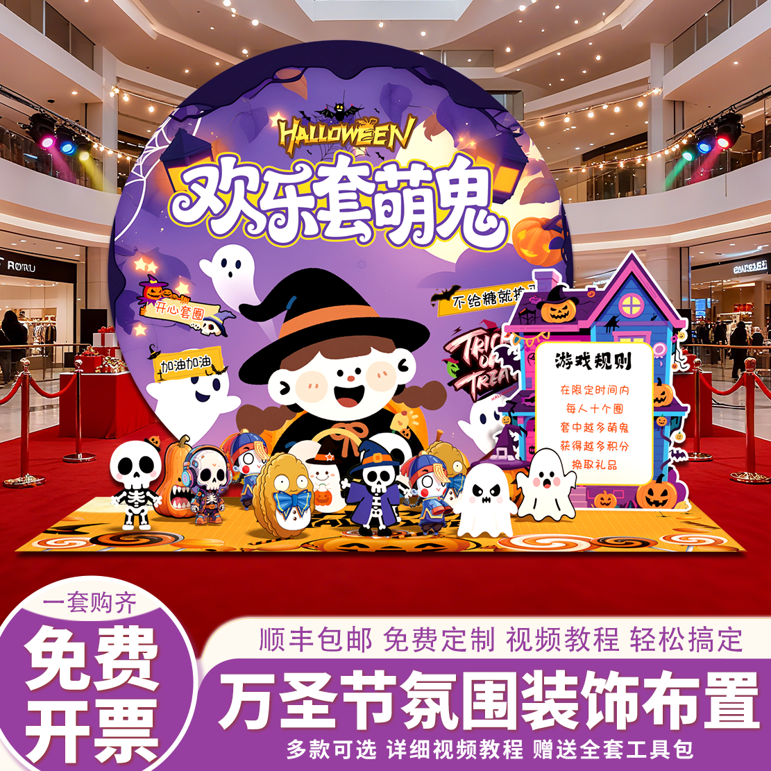 万圣节套圈圈游戏氛围布置装饰场景商场拍照打卡气球背景墙kt展板