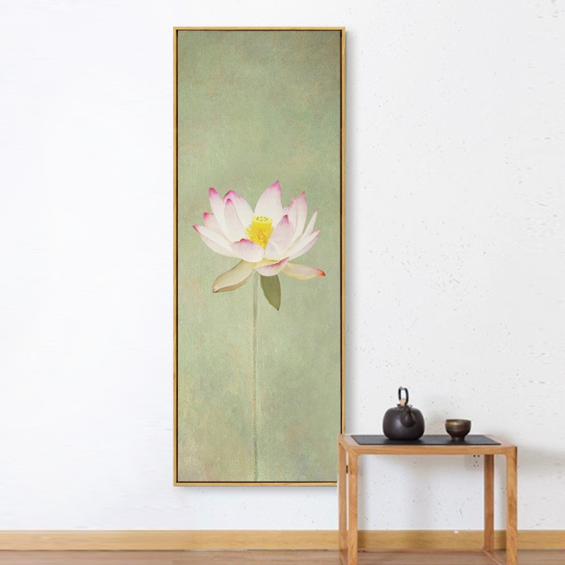 新中式荷花客厅i装饰画莲花壁画茶书房室背景墙画走廊过道玄关挂