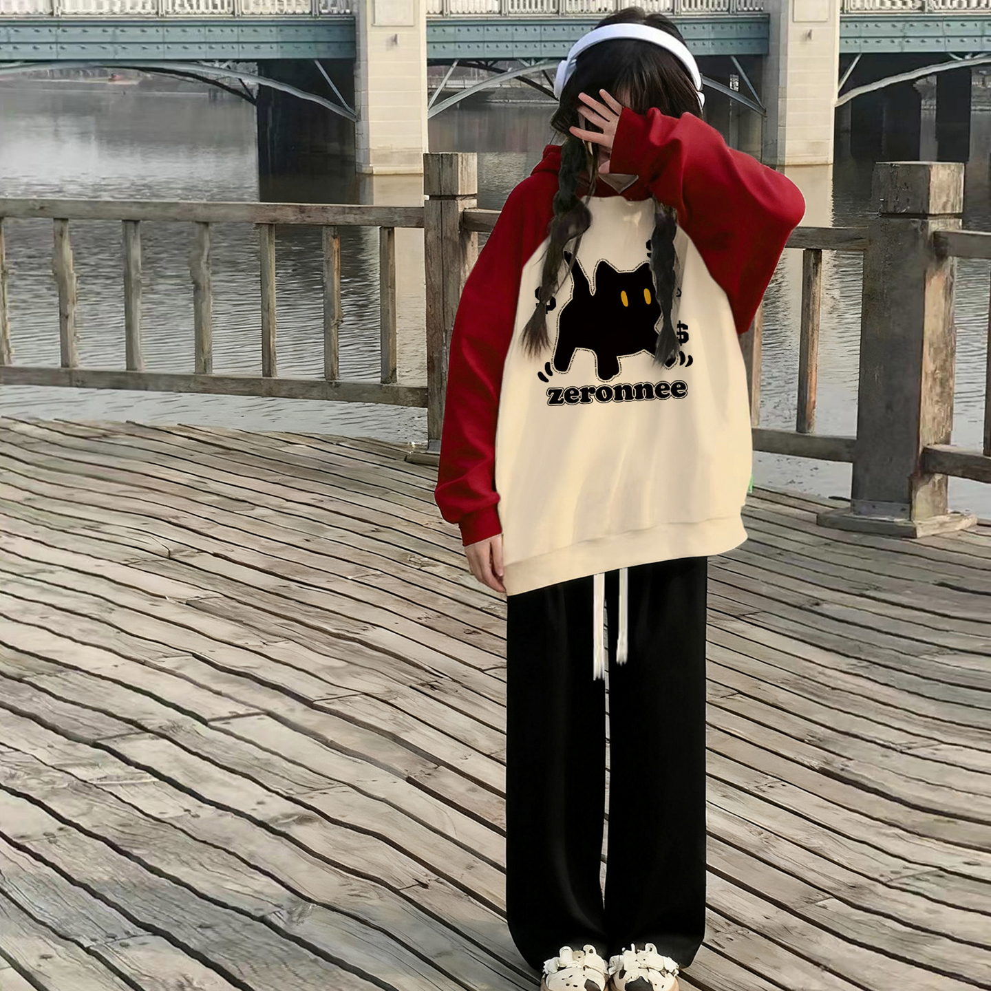 撞色长袖秋天运动套装女生裤子秋冬季新款连帽卫衣少女初中生套装