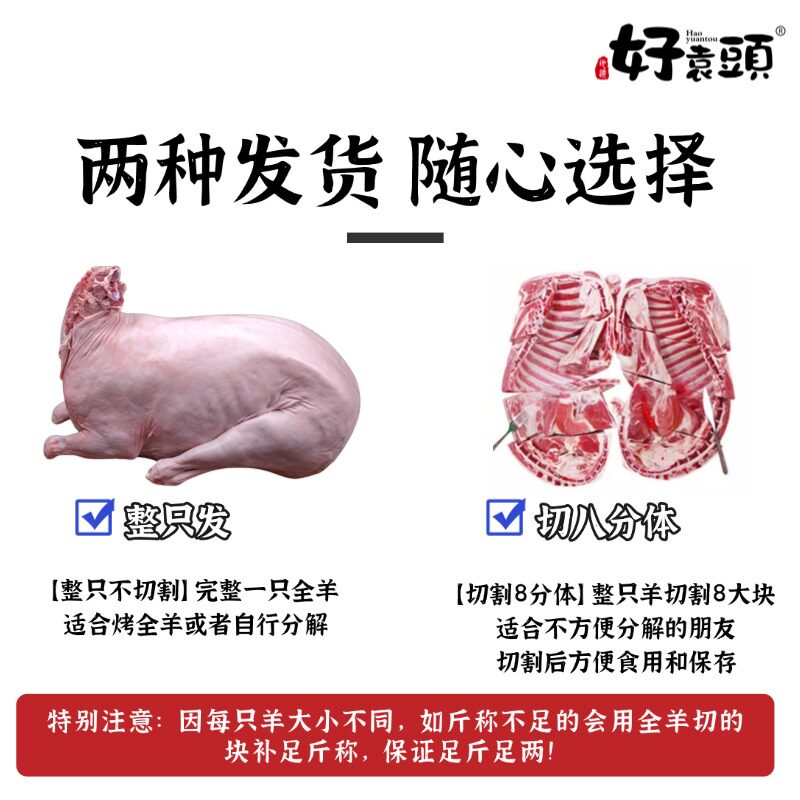 好袁头内蒙羔羊整只带皮全羊羊肉新鲜白条羊排羊腿羊蝎子礼盒全羊