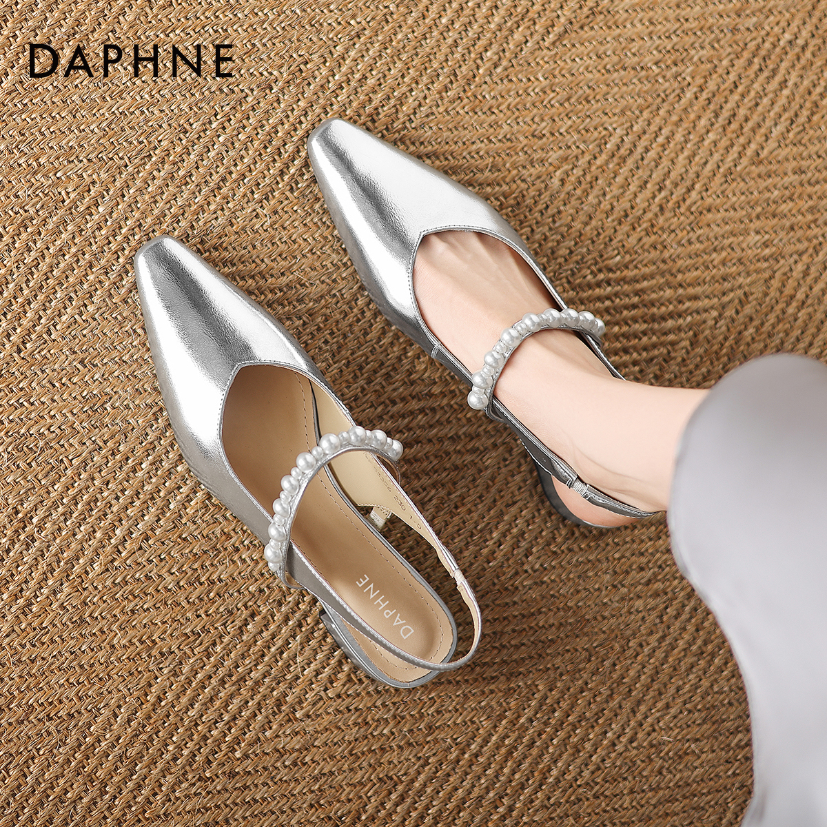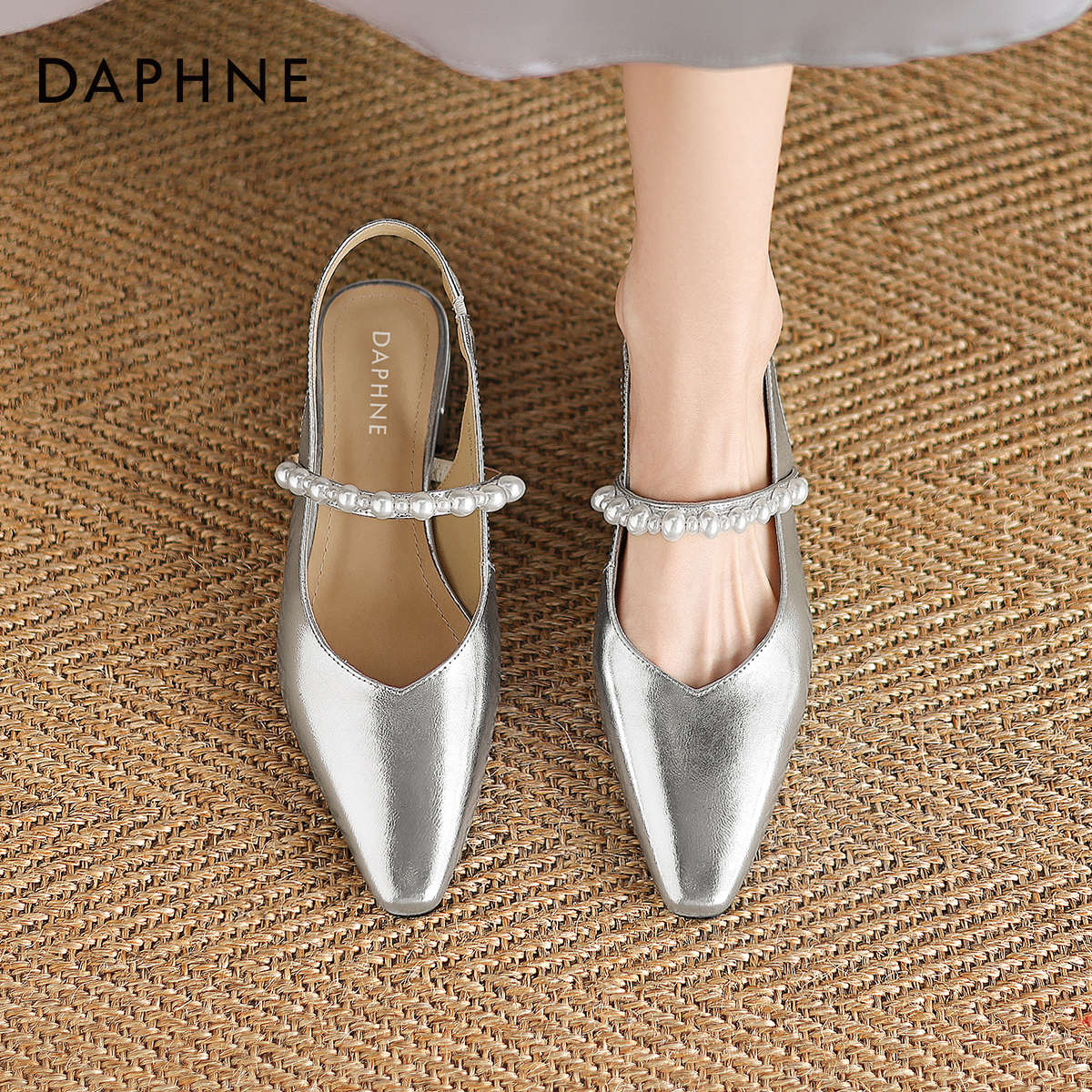 达芙妮银色凉鞋女款2025新款夏季包头外穿尖头法式后空玛丽珍单鞋