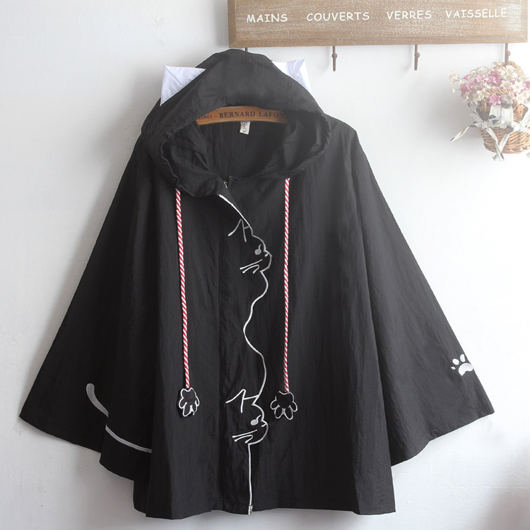 超爆男女同款夏季薄款连帽外套喇叭袖个性猫咪轮廓软妹宽松防晒衣