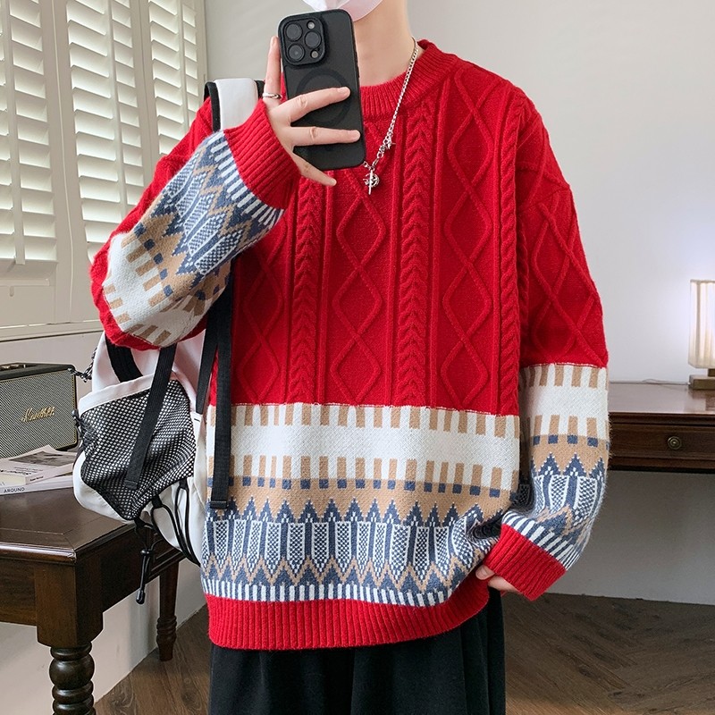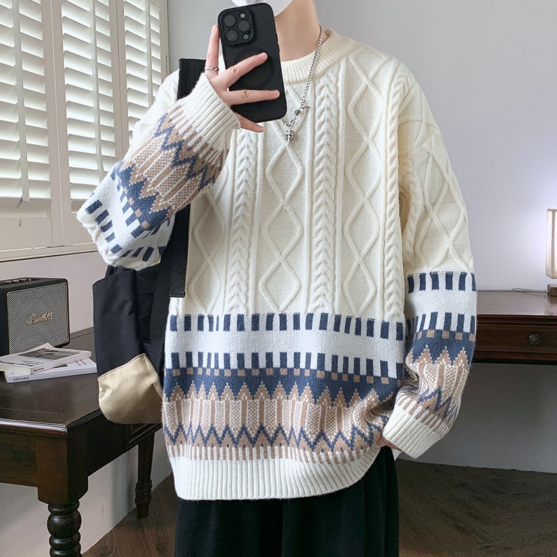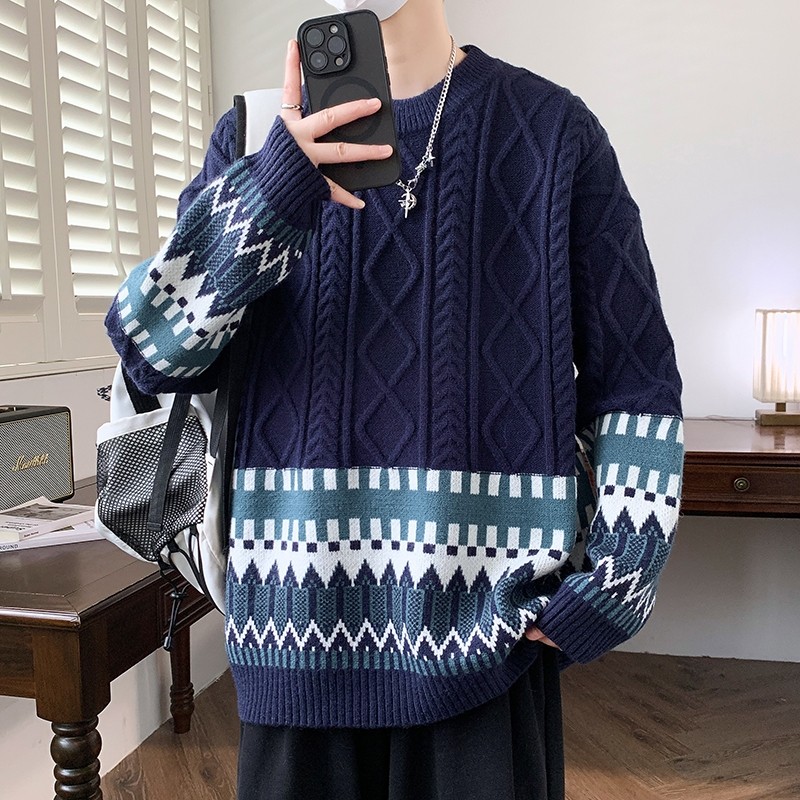 潮牌菱格麻花毛衣男款秋冬季加厚保暖2026新慵懒风针织打底衫以純