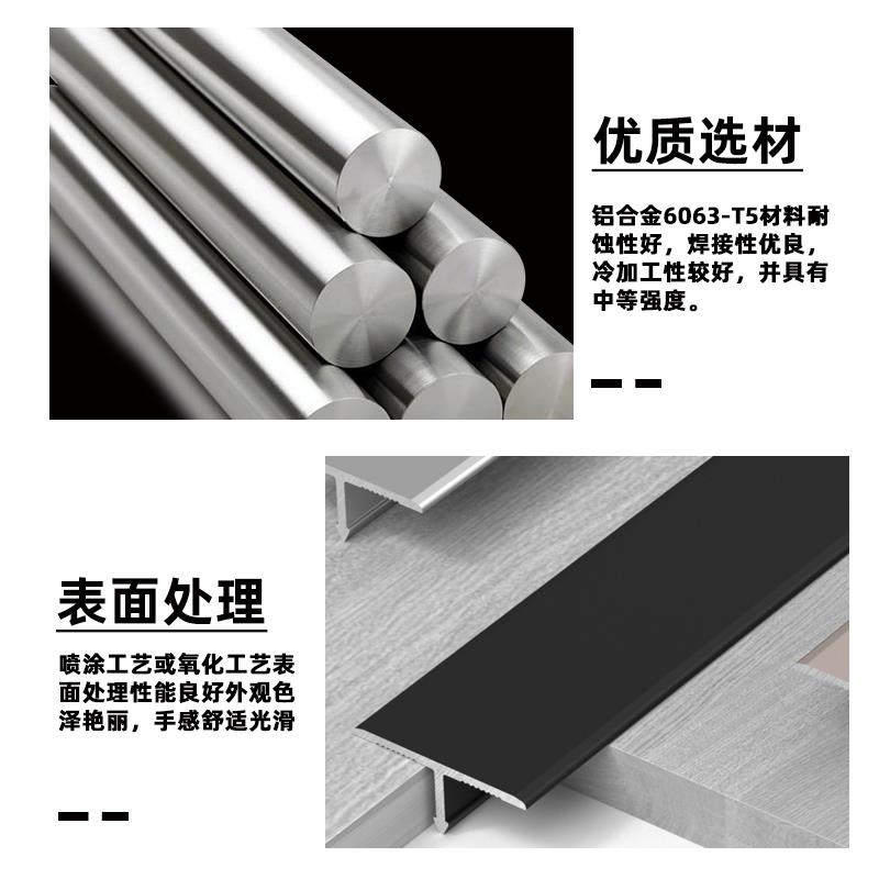 铝合金T型条木门镶嵌条背景墙金属装饰线条压条 极简收边压线卡条