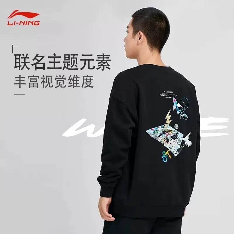 李宁韦德加绒保暖卫衣男子秋冬款运动宽松圆领套头衫上衣AWDSI39