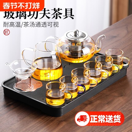 玻璃功夫茶具套装家用2025新款简约茶壶茶杯茶盘泡茶专用一套整套