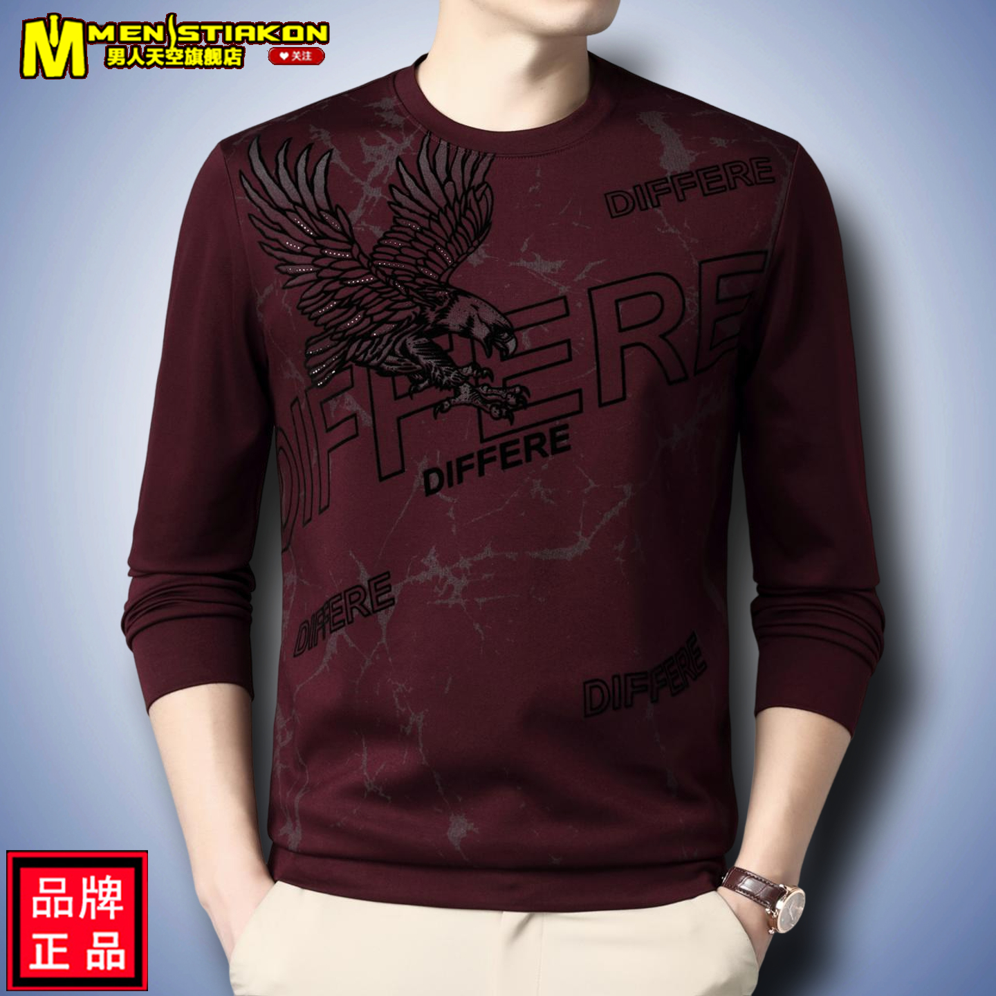 男士秋衣卫衣烫钻打底衫男款潮流新款打底印花长袖t恤男秋装上衣