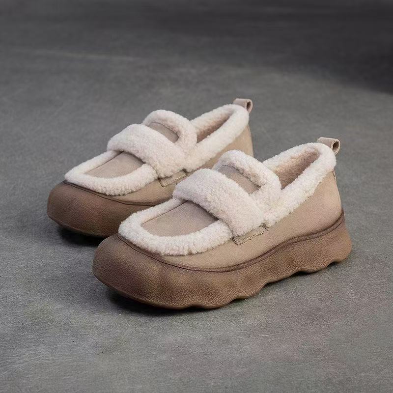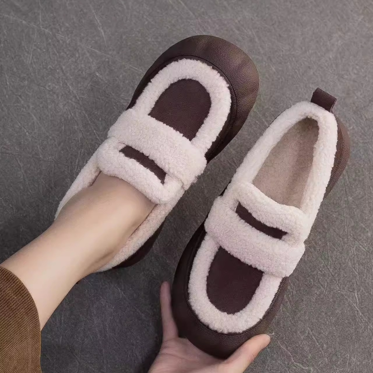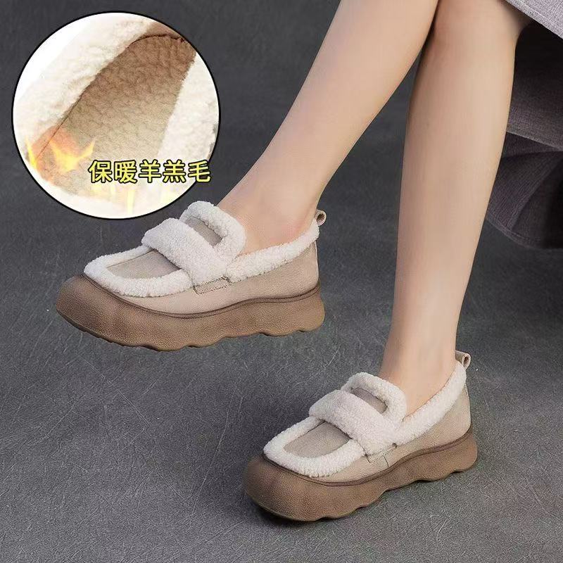 2025秋冬款真皮厚底一脚蹬保暖低帮棉鞋时尚百搭加绒单鞋休闲女鞋