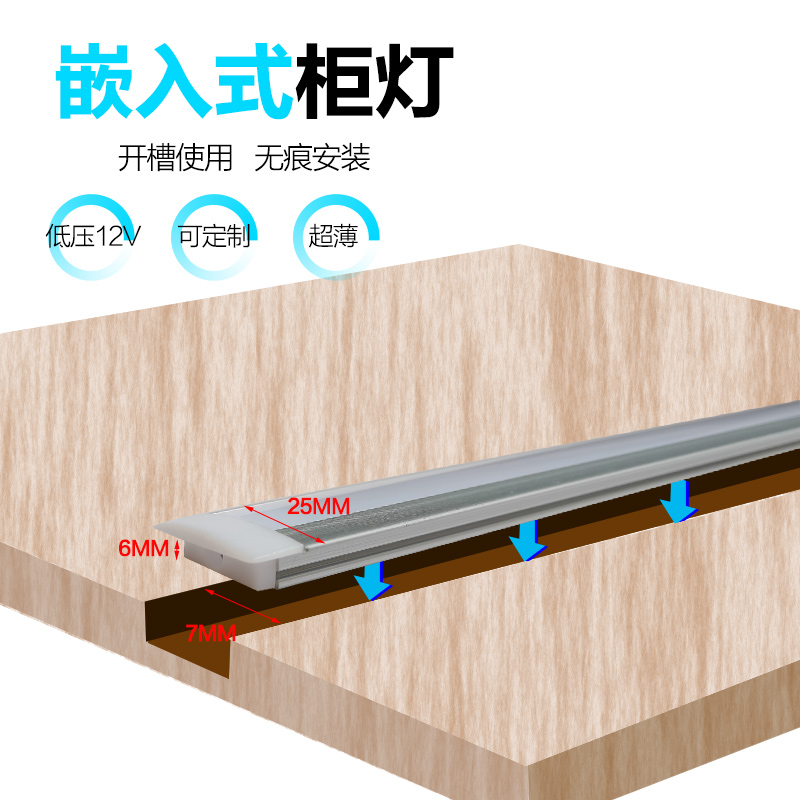 超薄led灯带12v衣柜酒柜嵌入式暗装铝槽硬灯条橱柜层板灯长条贴片