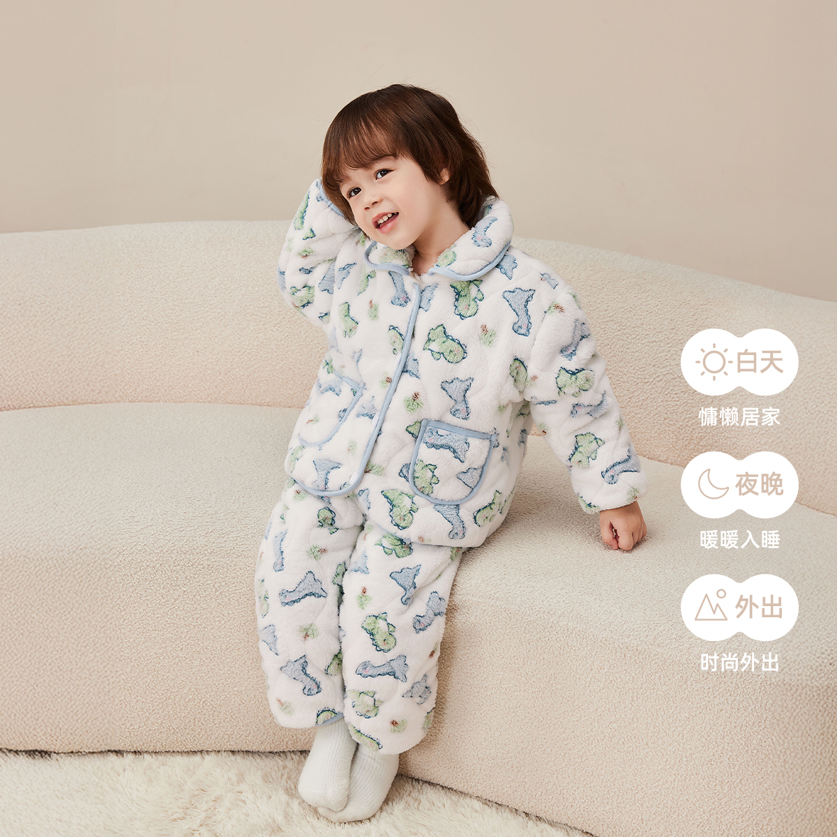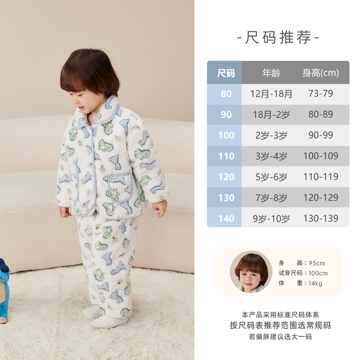 [抗菌远红外]儿童家居服秋冬宝宝双面法兰绒男童开衫套装女童睡衣