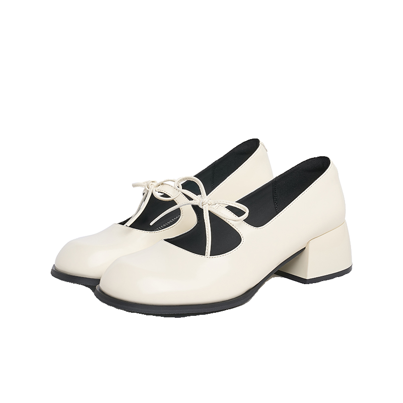 卓诗尼春秋季新款女士单鞋子圆头粗高跟套脚一字带休闲百搭时装